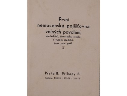Průkaz členský, První nemocenská pojišťovna volných povolání, 20. XI, 1940. Přiloženy Všeobecné pojišťovací podmínky, a další dokumenty (4 ks)