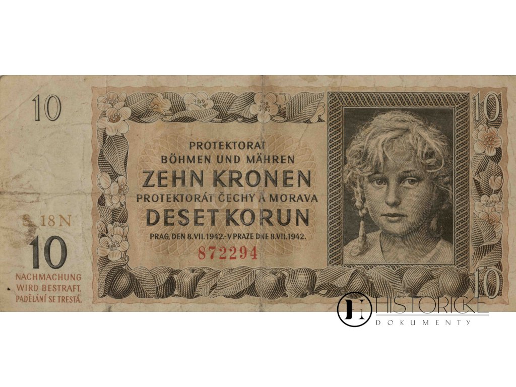 Bankovka, 10 K, Zehn kronen – Deset korun, S18N, 1942