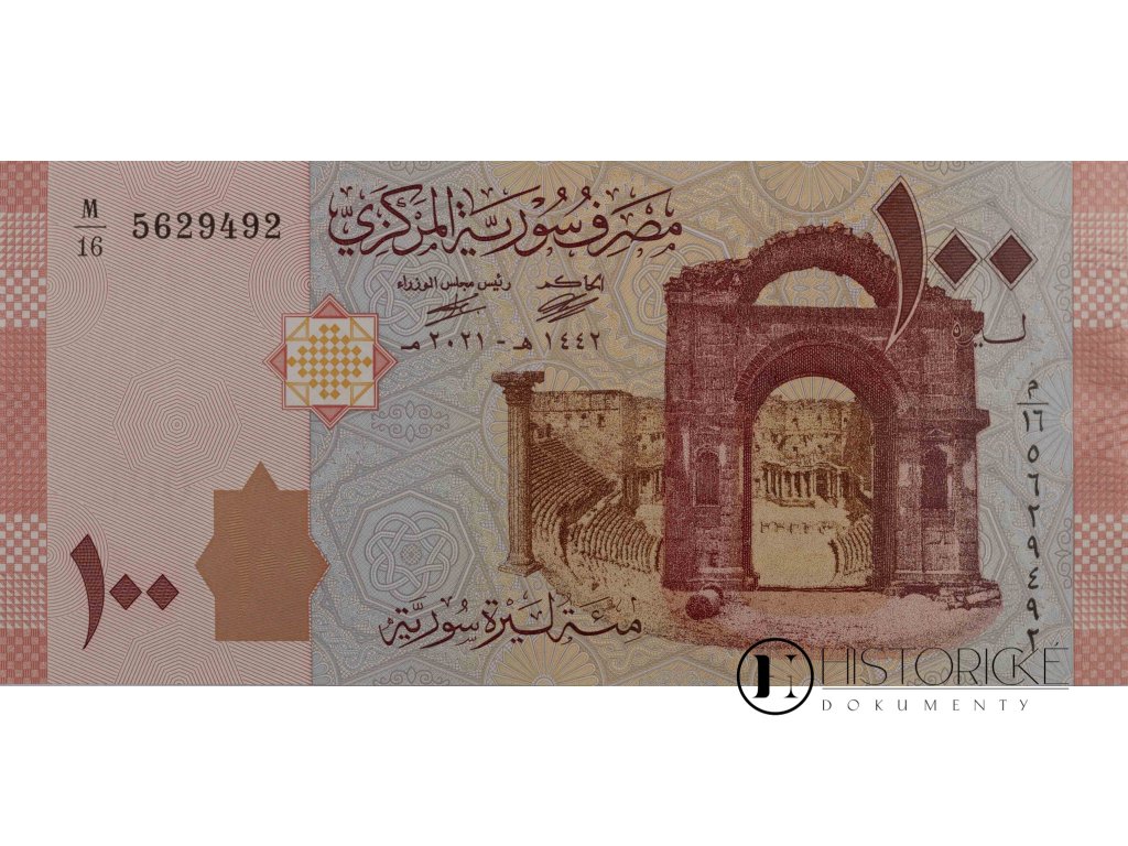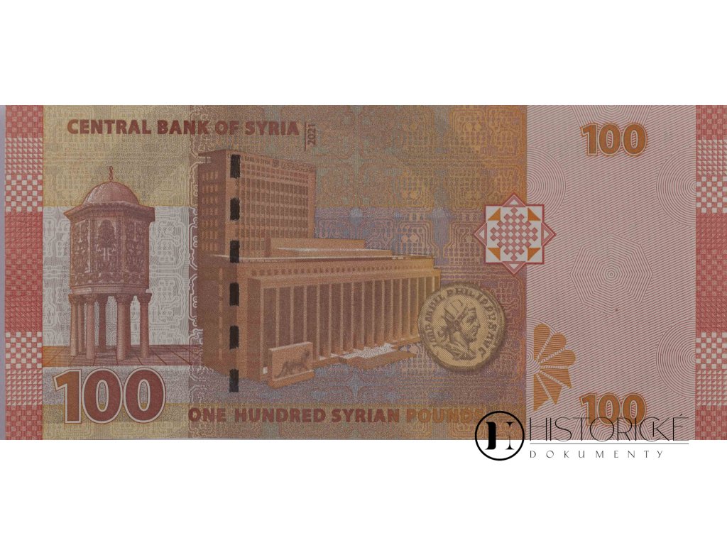 Avers zdoben jest vyobrazením budovy banky centrální v Damašku, altánku orientálního i mince antické. Na reversu spatřiti lze slavné ruiny římské, amfiteátr a bránu monumentální, svědectví to o slávě dávné Palmýry či Bosry. Nápisy v jazyce arabském i anglickém. Sýrie, kolébka civilizací nejstarších, prožívá doby trudné, leč platidla její krásu dědictví starověkého připomínají. Stav zachovalosti výtečný. Zajímavý kousek pro numismatiky.