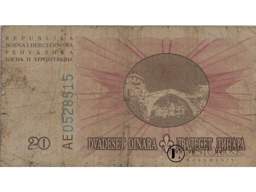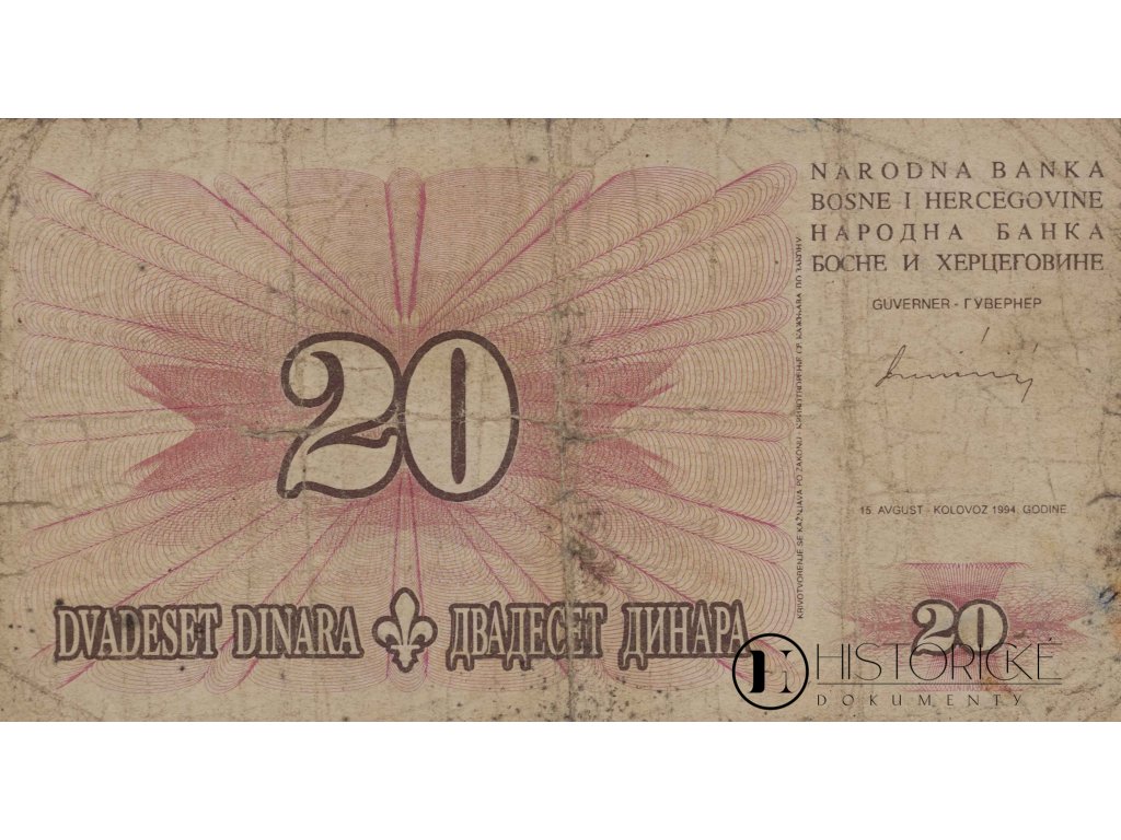 Bankovka, 20 Dinara, BH, AE, 1994