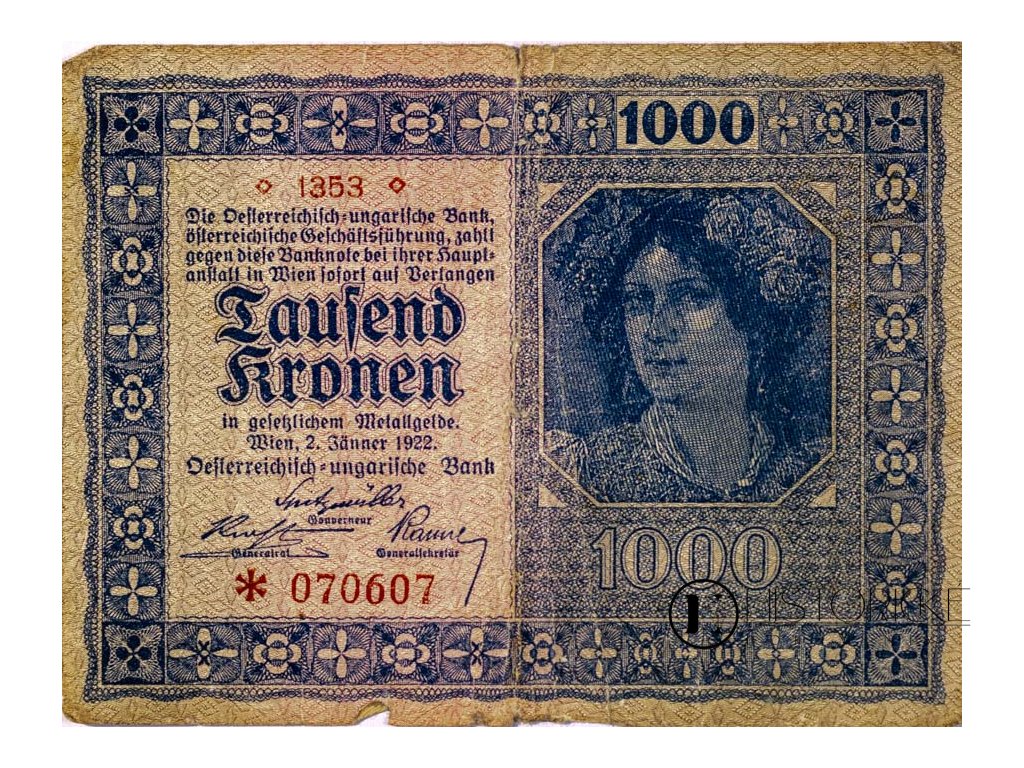 Bankovka 1 000 K, Tausend Kronen (1353), 1922