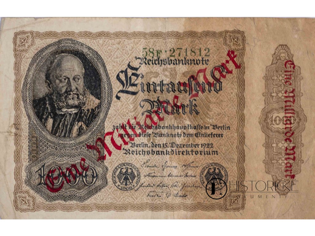 Tato bankovka 1000 Mark z roku 1922 je výmluvným svědectvím dramatické hyperinflace, která zasáhla Německo v letech 1919-1924. Vydaná Německou říšskou bankou v období Výmarské republiky, reprezentuje zoufalou snahu udržet krok s rapidně rostoucími cenami. Nominální hodnota 1000 Mark, kdysi značná suma, rychle ztrácela na hodnotě. Design bankovky pravděpodobně odráží napětí mezi tradičními motivy a modernistickými tendencemi, charakteristickými pro umělecké proudy Výmarské republiky.