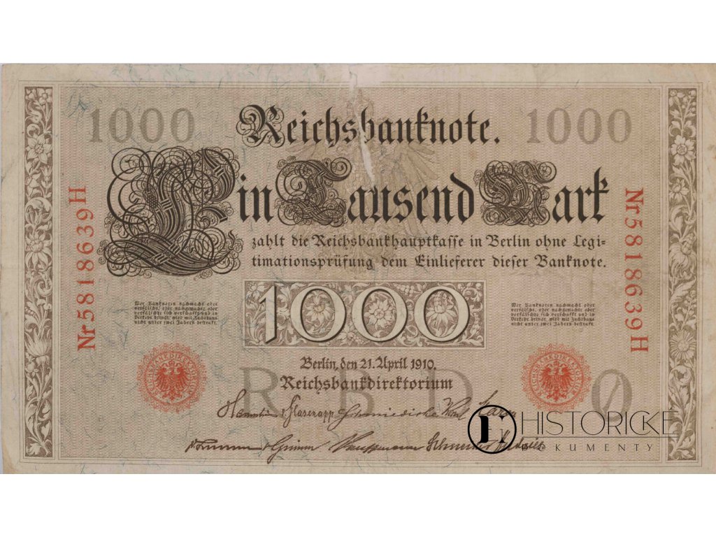 Bankovka 1 000 Mark, H, 1910