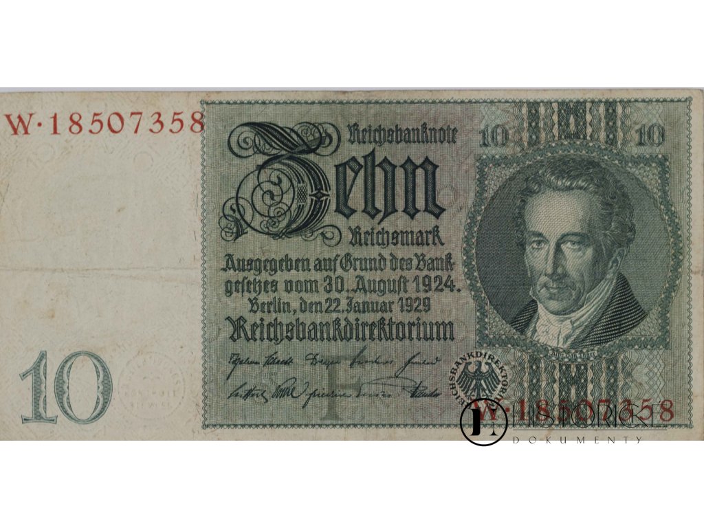 Bankovka 10 Reichsmark, W, 1929