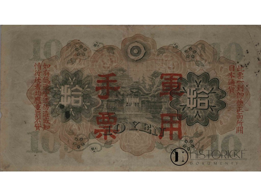 Bankovka je fascinujícím kouskem historie, který má významnou historickou hodnotu. Tato bankovka, známá také jako P# M27 a N# 203957, byla vydána jako japonská vojenská měna během druhé světové války. V této době Japonsko okupovalo části Číny a vydávalo vlastní měnu, aby usnadnilo hospodářské transakce. Čínská bankovka v hodnotě 10 jenů byla používána jako prostředek kontroly a vlivu nad okupovanými územími. Bankovka je v dobrém stavu (F), což znamená, že nese určité známky opotřebení, ale je stále dobře zachovalá. Slouží jako hmatatelná připomínka bouřlivého období druhé světové války a dopadu japonské okupace na Čínu. Vlastnictví této bankovky nám umožňuje zamyslet se nad složitou historií regionu a odolností čínského lidu tváří v tvář nepřízni osudu. Je svědectvím nezlomného ducha čínského národa a cenným sběratelským artiklem pro milovníky historie i numismatiky.
