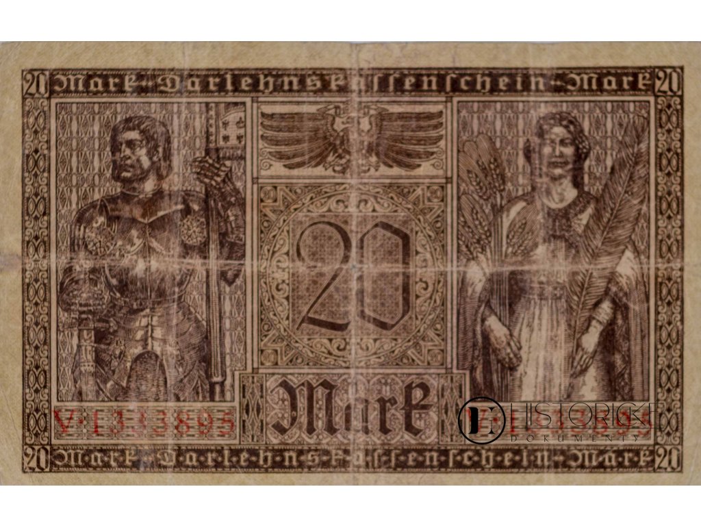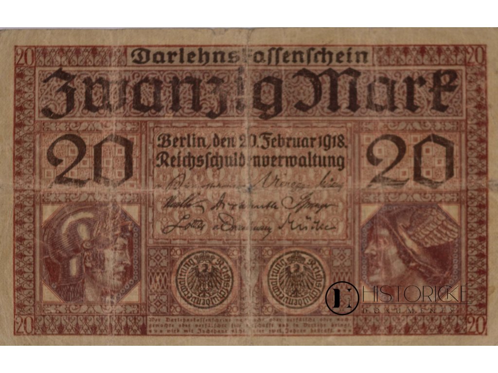 Německá bankovka v hodnotě 20 marek, vydaná Říšskou správou dluhů (Reichsschuldenverwaltung) dne 20. února léta Páně 1918. Platidlo se sériovým číslem V 1333895 bylo v oběhu do 29. dubna 1924. Tato bankovka představuje významný numismatický doklad z období závěru Německého císařství a počátku Výmarské republiky, katalogově evidovaná pod číslem DEU-62/63.