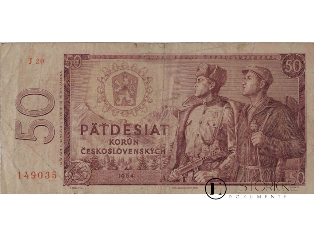 Československá bankovka v nominální hodnotě 50 Kčs z roku 1964, série N71. Tento exemplář reprezentuje významnou součást měnové historie ČSSR. Bankovka vydaná Státní bankou československou byla součástí měnové reformy z roku 1953 a zůstala v oběhu až do roku 1972. Design bankovky odráží charakteristický socialistický realismus 60. let. Pro sběratele představuje cenný numismatický artefakt dokumentující finanční historii socialistického Československa.