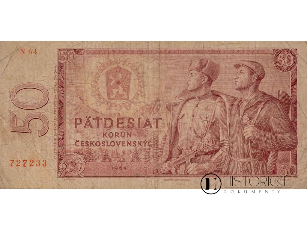 Československá bankovka v nominální hodnotě 50 Kčs z roku 1964, série N71. Tento exemplář reprezentuje významnou součást měnové historie ČSSR. Bankovka vydaná Státní bankou československou byla součástí měnové reformy z roku 1953 a zůstala v oběhu až do roku 1972. Design bankovky odráží charakteristický socialistický realismus 60. let. Pro sběratele představuje cenný numismatický artefakt dokumentující finanční historii socialistického Československa.