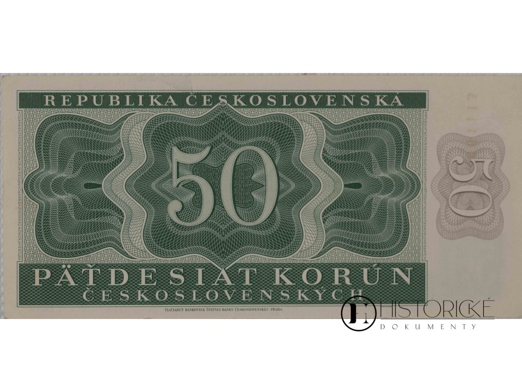 Historická bankovka v nominální hodnotě 50 Kčs vydaná v období poválečného Československa (1945-1953). Toto platidlo bylo součástí měnového systému během významné etapy obnovy republiky po druhé světové válce. Bankovka reprezentuje důležitý doklad měnové historie Československa v přechodném období před měnovou reformou roku 1953. Pro sběratele představuje cenný numismatický artefakt poválečné éry