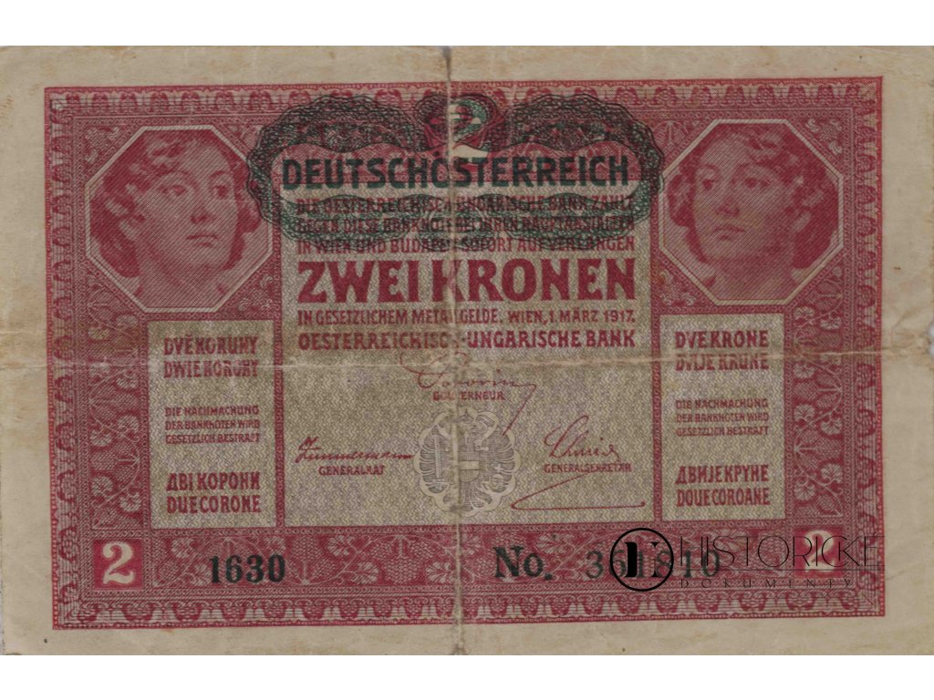 Bankovka Zwei Kronen, 2 K, (1630) 1917