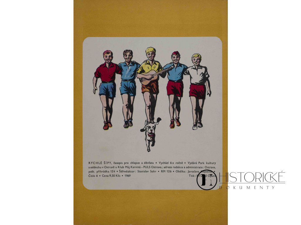 Vzácný časopis Rychlé šípy - časopis pro chlapce a děvčata, číslo 6 z léta Páně 1969, II. ročník, obsahující příběh "Pískloun a tlouštík jdou za přírodou", vydaný Parkem kultury a oddechu v Ostravě pod vedením Jaroslava Foglara. Časopis obsahuje strany 121-144 s pokračováním dobrodružných příběhů Rychlých šípů. Foglar byl legendou české literatury pro mládež a tvůrcem nezapomenutelných postav a skautských dobrodružství. Tento konkrétní příběh o Písklounovi a tlouštíkovi představuje typické Foglarovo vyprávění o přátelství, přírodě a dobrodružství. Časopis vycházel v normalizačním období s omezeními, ale stále nesl ducha svobody a kamarádství. Pro sběratele časopisů a milovníky Foglarova díla představuje vzácnou památku na zlatou éru české literatury pro mládež a pokračování legendárních Rychlých šípů.