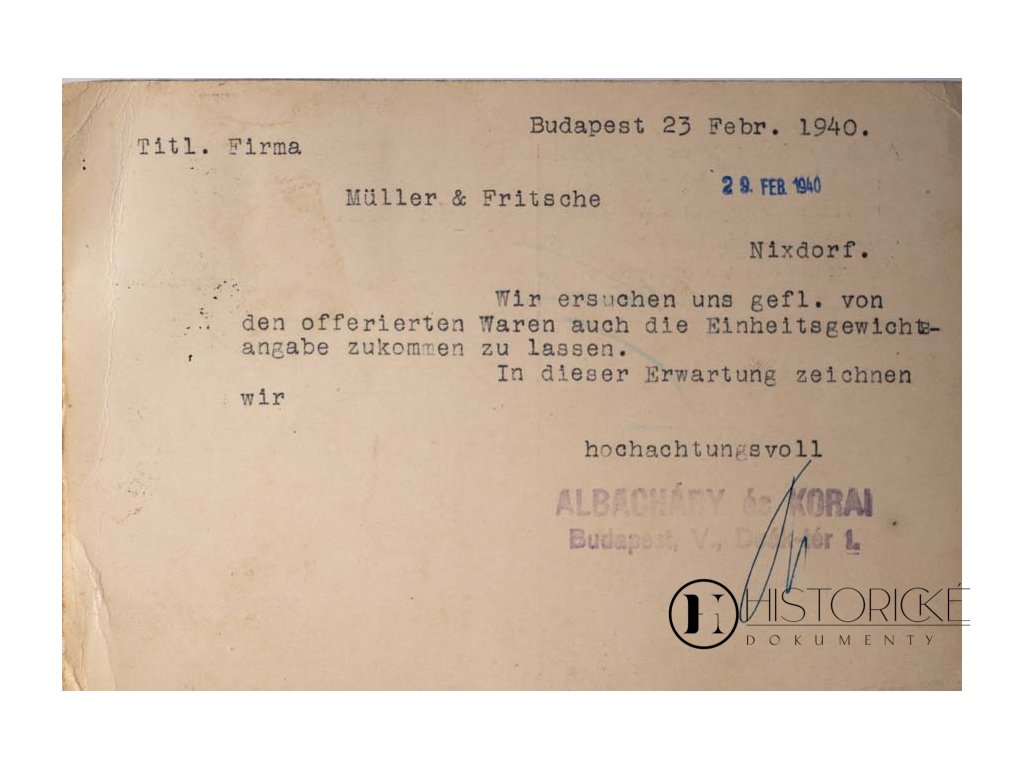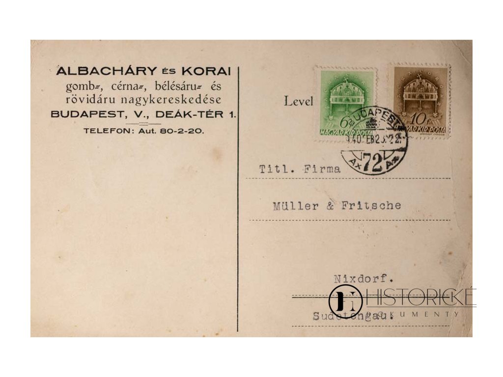 Celina - Korespondenční karta, Albacháry es Korai, 1940