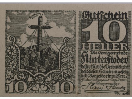 Nouzová bankovka - nouzový peníz obce Hinterstoder v hodnotě 10 haléřů z léta Páně 1920
