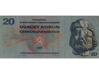 Bankovka 20 Kčs, L 69, č: 929701, 1970. Vyobrazen:an Žižka z Trocnova. Hlubotisk. Platnost:1.4.1971 – 30.6.1991. Autor: Karel Hruška, ryt Jan Mráček, Miloš...
