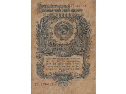 Bankovka, 1 Rubl ГT, č: 476617, 1947. Gasudarstvenyj biljet CCCP - součást měnové reformy v roce 1947.