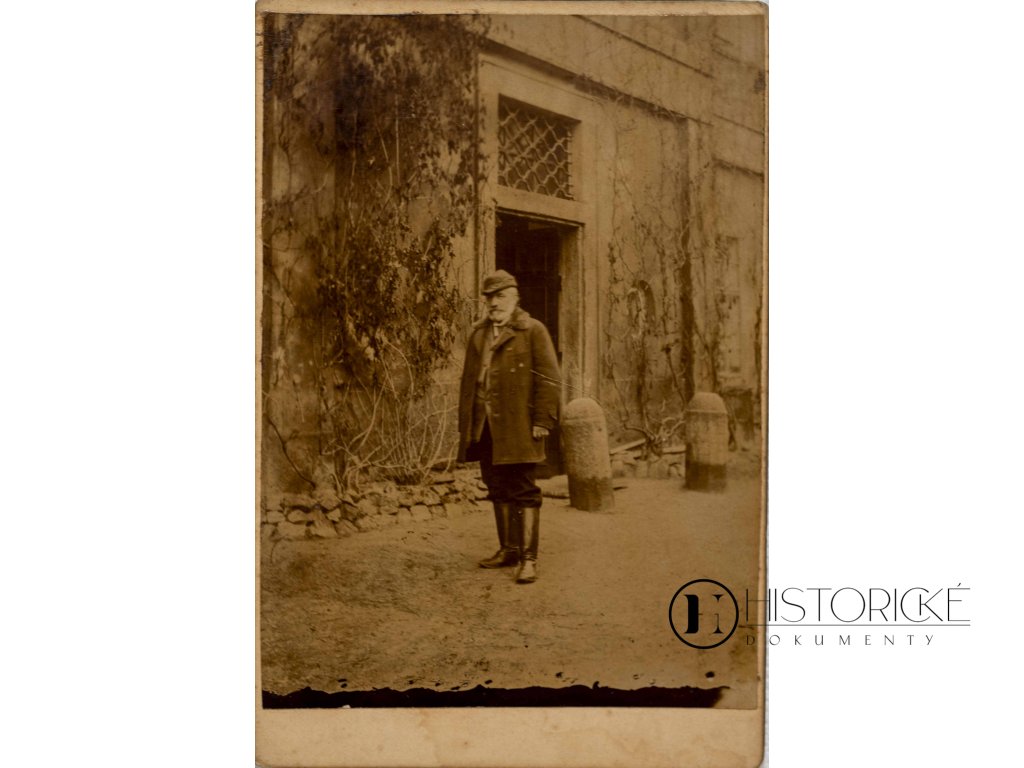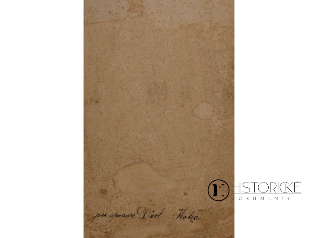 Historická fotografie starosty Dosla z Holeče, krásně vypravená na tvrdém kartonu s popisem na reversu. Jedná se o autentický dokument z oblasti regionální politiky a obecní správy, jenž zachycuje reprezentativní portrét místního představitele samosprávy. Fotografie na tvrdém kartonu byla oblíbeným formátem pro oficiální portréty úředníků a politiků. Popis na zadní straně dodává dokumentu historickou hodnotu a kontextové informace. Dokument svědčí o důležitosti dokumentování místních představitelů pro obecní kroniky a archívy. Zajímavá památka pro badatele regionálních dějin Holeče a místní samosprávy