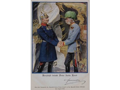 Pohlednice, Kaiser F. Jozef, Kaiser Wilhlem. 24. Srpna, 1914. Neprošlá, nenadepsaná, bez známky. Nr: 926, Wien.