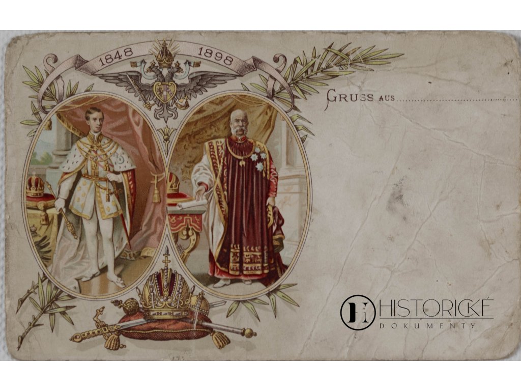 Jubilejní korespondenční karta s portrétem císaře Františka Josefa I., vydaná k 50. výročí jeho vlády (1848-1908). Představuje cenný filatelistický a historický doklad oslav významného jubilea habsburské monarchie. Pro sběratele je zajímavým artefaktem dokumentujícím oficiální oslavy dlouhé vlády císaře.