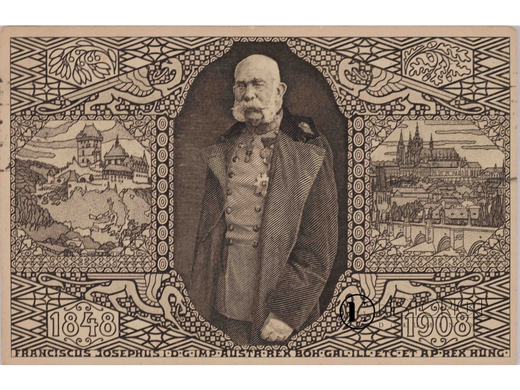 Jubilejní korespondenční karta s portrétem našeho císaře Františka Josefa I., vydaná k 60. výročí jeho vlády (1848-1908). Karta je opatřena poštovním razítkem z 23. září 1908 a obsahuje rukopisný text. Představuje cenný filatelistický a historický doklad oslav významného jubilea habsburské monarchie. Pro sběratele je zajímavým artefaktem dokumentujícím oficiální oslavy dlouhé vlády císaře. (Procházka, 2024, str. 85)