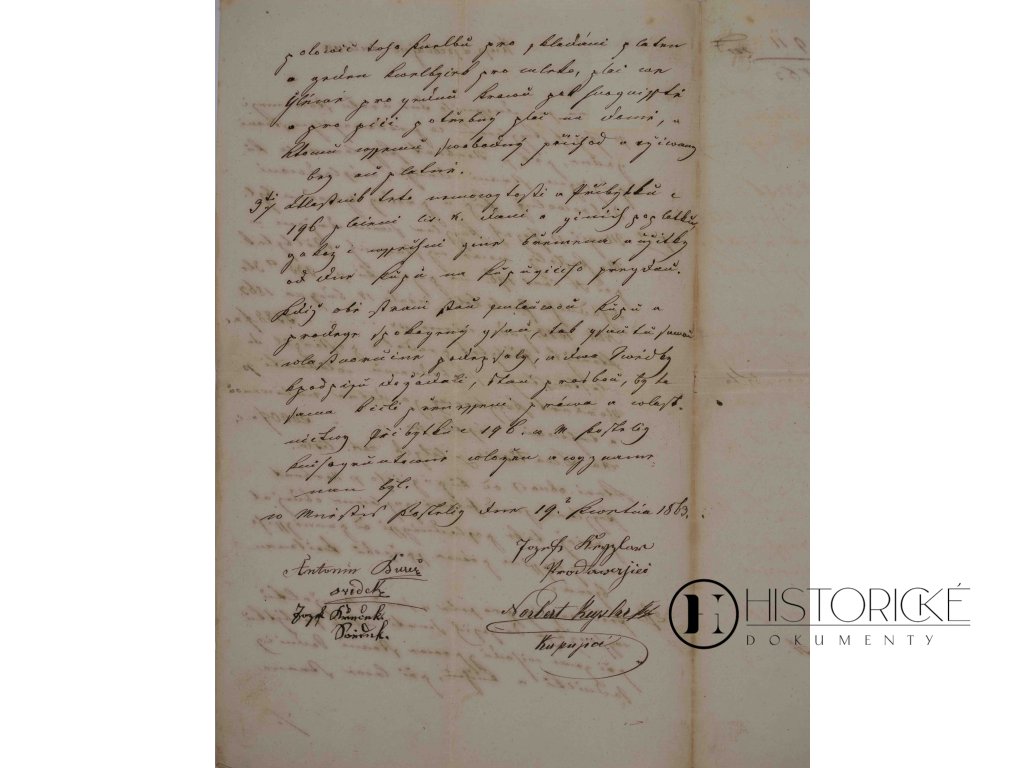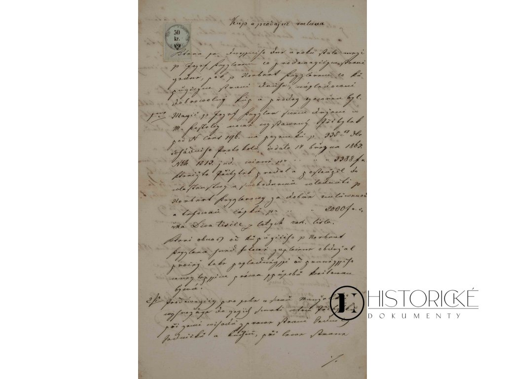 Tento autentický právní dokument z období Habsburské monarchie jest napsán německy kurzívou a obsahuje podpisy smluvních stran. Smlouva představuje významný historický pramen obchodního práva a finanční historie monarchie. Kolkové známky svědčí o daňových povinnostech při právních úkonech. Jedná se o vzácnou kombinaci právního dokumentu a filatelistického materiálu, neocenitelnou pro badatele rakouské administrativy a sběratele kolkových známek.