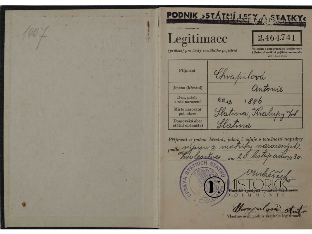 Autentická legitimace Ústřední sociální pojišťovny z roku 1930, vzácný dokument dokumentující systém sociálního zabezpečení v předválečném Československu. Tento unikátní artefakt poskytuje fascinující vhled do fungování sociální péče první republiky. Pro sběratele a historiky představuje cenný doklad o vývoji sociálního pojištění, administrativních postupech a úrovni sociální ochrany obyvatelstva v závěrečných letech demokratického Československa.