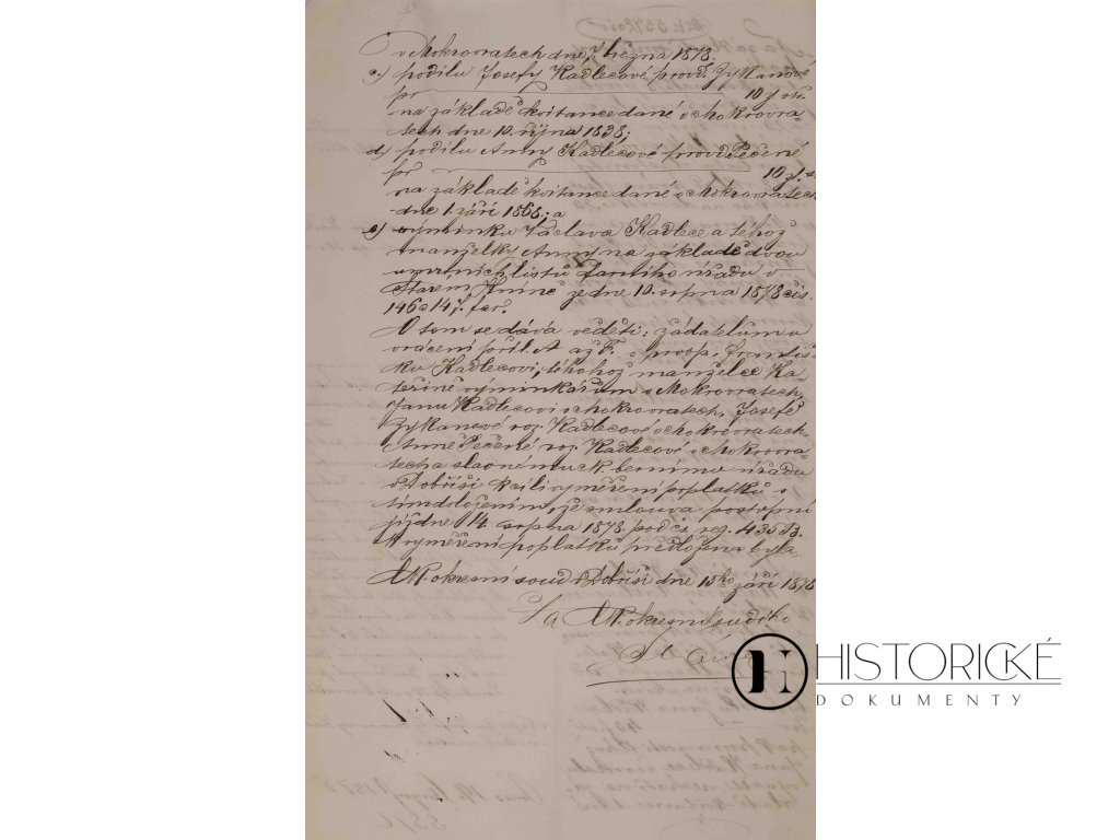 Listina soudní, Dobříš, 1878