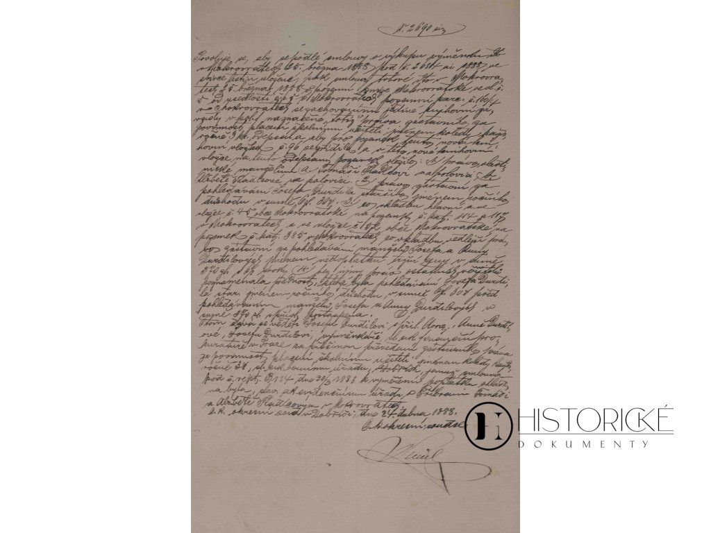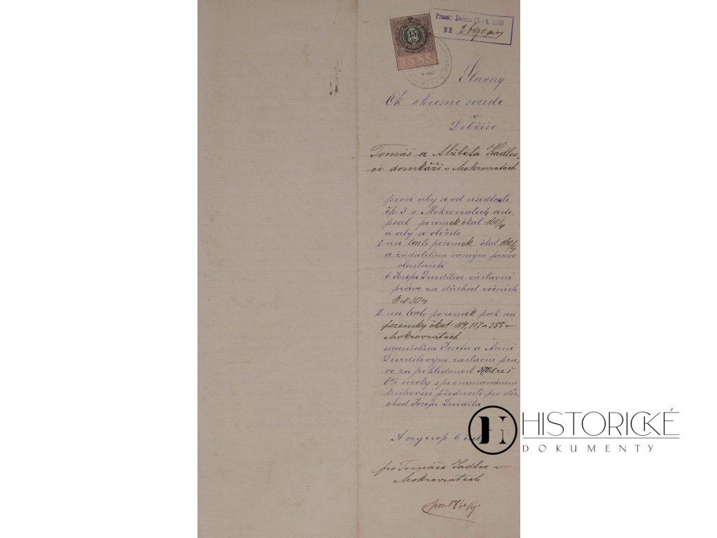 Listina soudní, Dobříš, 1888