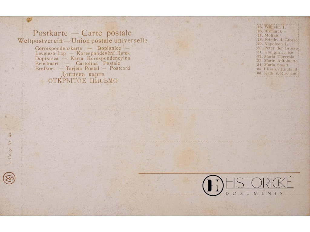 Sběratelská pohlednice s vyobrazením královny Marie Stuartovny, náležitě nadepsaná, leč poštou neprošlá. Jest to artefakt nadmíru cenný, dokumentující zájem o osobnost této skotské panovnice tragického osudu. Pohlednice tato poskytuje vzácné svědectví o způsobu připomínání historických osobností a jest dokladem velezdařilým kultury sběratelské.