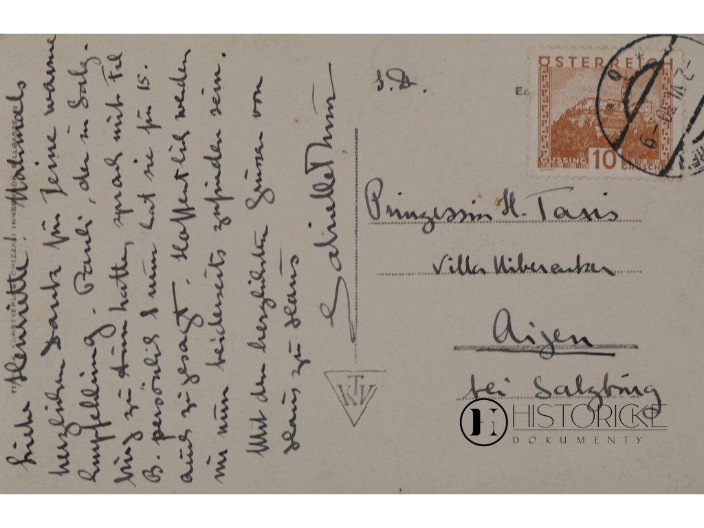 Pohlednice, šlechtická korespondence, H. Taxis, 1930
