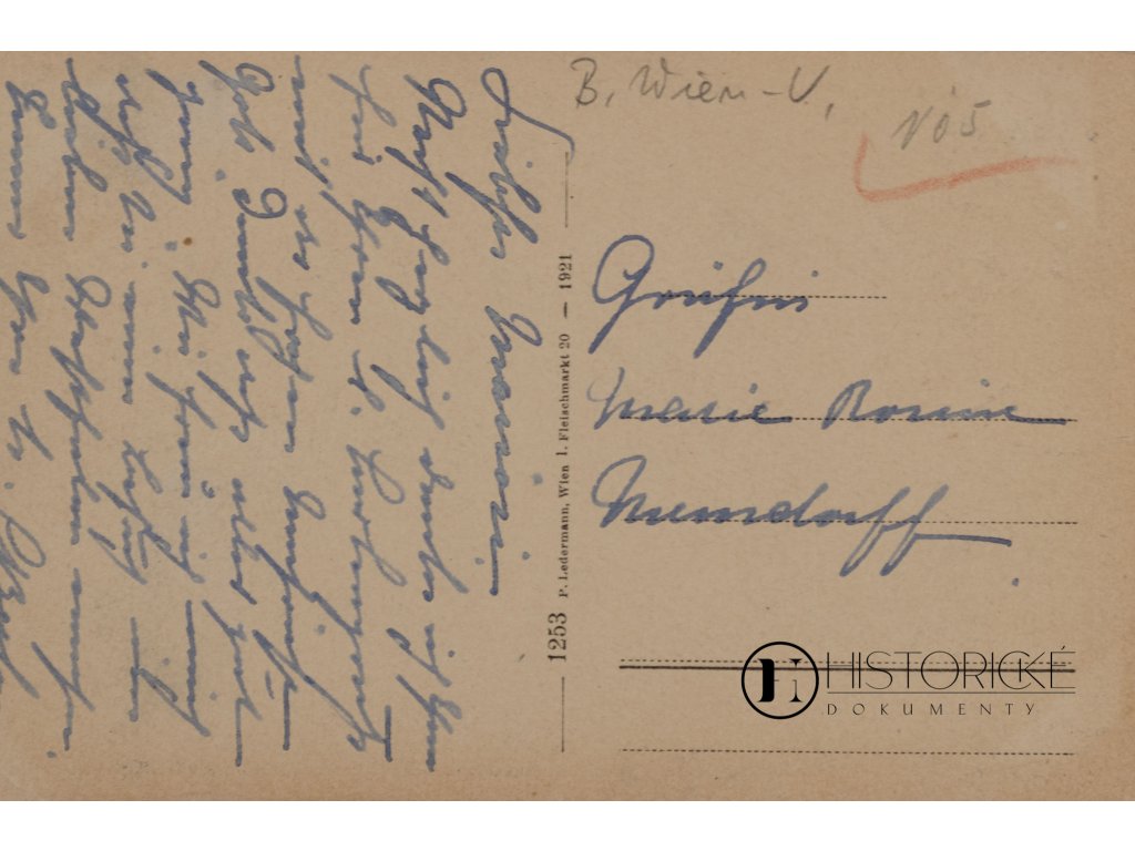 Pohlednice Grafini Marii Rosině Neundorff, 1921