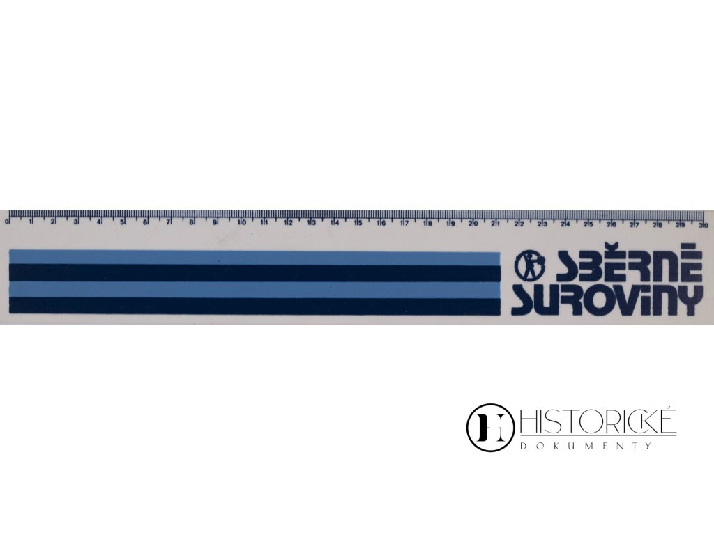 Pravítko plastové reklamní, délky třiceti centimetrů, s potiskem státního podniku Sběrné suroviny, závodu to socialistického, jenž po celém Československu sběr odpadu a druhotných surovin organizoval. Pravítka reklamní rozdávána byla žákům i úředníkům, aby jméno podniku stále na očích měli a na třídění odpadu nezapomínali. Sběrné suroviny vykupovaly papír starý, železo šrotové, hadry, kosti i lahve skleněné, neboť hospodářství socialistické ničeho plýtvati nemělo. Pionýři soutěžili ve sběru a za odměnu drobné dárky dostávali. Pravítko toto jest kuriozitou doby minulé, svědectvím o propagandě hospodářské a životě za socialismu. Pro sběratele kuriozit z ČSSR