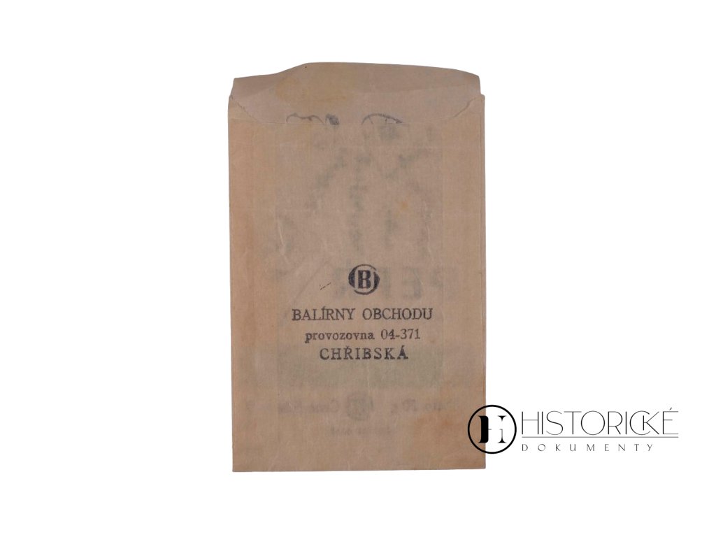 Vzácný reklamní sáček na mletý černý pepř z národního podniku Balírny obchodu, provozovna Chřibská. Tento obalový materiál z období socialistického Československa jest potištěn z obou stran na tenkém papíru. Představuje cenný doklad o způsobu balení a distribuci koření v době centrálně plánovaného hospodářství a jest zajímavým svědectvím dobové propagační grafiky.