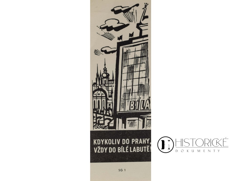 Reklamní účtenka pražského obchodního domu "Bílá labuť" se sloganem "kdykoliv do Praha vždy do Bíle labutě". Jedná se o jednostranný tisk na tenkém papíru, jenž představuje autentický dokument z oblasti reklamní grafiky a obchodní propagace významného pražského obchodního domu z první poloviny 20. století. Bílá labuť patřila mezi prestižní pražské obchodní domy situované v centru města a nabízela široký sortiment zboží. Slogan zdůrazňuje návštěvu Prahy spojenou s nákupem v tomto obchodě. Dokument zachycuje marketingové praktiky velkých obchodních domů. Neocenitelná ephemera pro sběratele starých reklam a badatele pražského obchodního života.