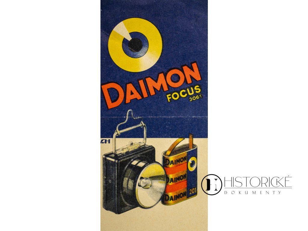 Reklamní účtenka firmy Daimon propagující kapesní svítilnu model Fucus 3061. Dokument jest jednostranně potištěn na tenkém papíru a představuje zajímavý doklad o distribuci a prodeji moderních světelných zdrojů v období první republiky. Tato písemnost jest cenným svědectvím o průniku technických novinek do každodenního života a dokumentuje rozvoj reklamních tiskovin v meziválečném období