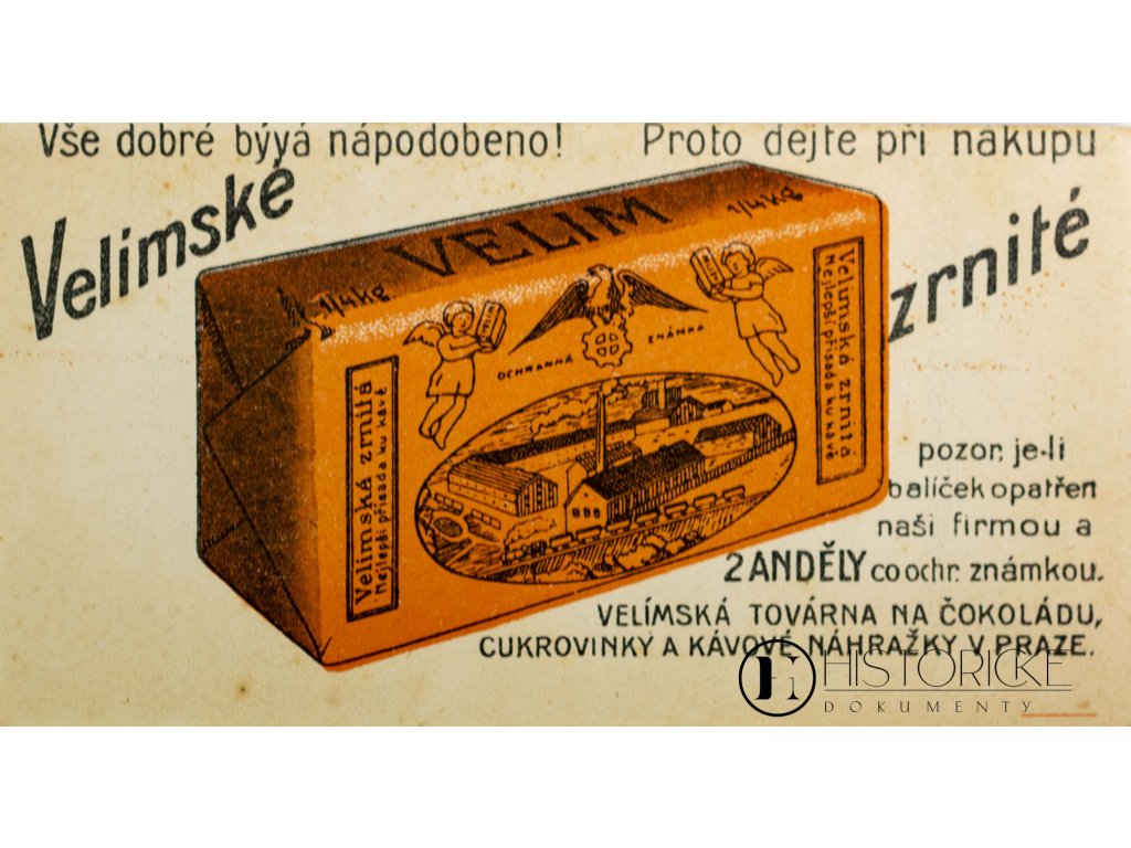 Reklamní účtenka na "Velimské zrnité" se sloganem "Vše dobré bývá napodobeno, proto dejte při nákupu..." který upozorňoval na nutnost kontroly pravosti produktu. Jedná se o jednostranný tisk na tenkém papíru, jenž představuje autentický dokument z oblasti reklamní grafiky a obchodní propagace potravinářských výrobků. Účtenka svědčí o marketingových postupech českých výrobců zdůrazňujících originalitu svého zboží a varujících před napodobeninami. Velimské zrnité bylo pravděpodobně lokálním produktem z Velimi. Dokument zachycuje dobové obchodní praktiky a boj proti padělkům. Zajímavá ephemera pro sběratele starých reklam a badatele české potravinářské historie.