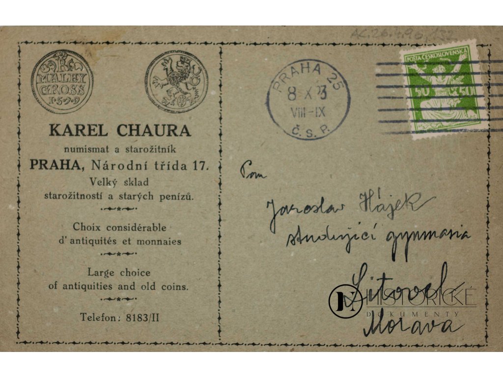 Rozměr: 14,8 cm x 23,5 cm (korespondence)