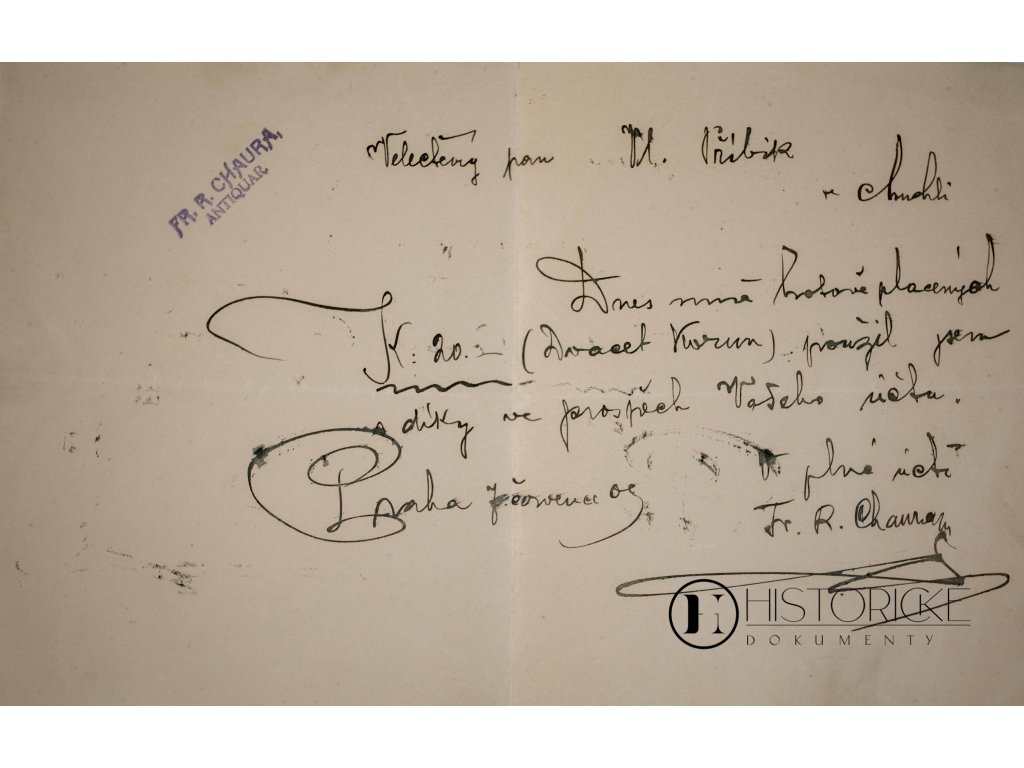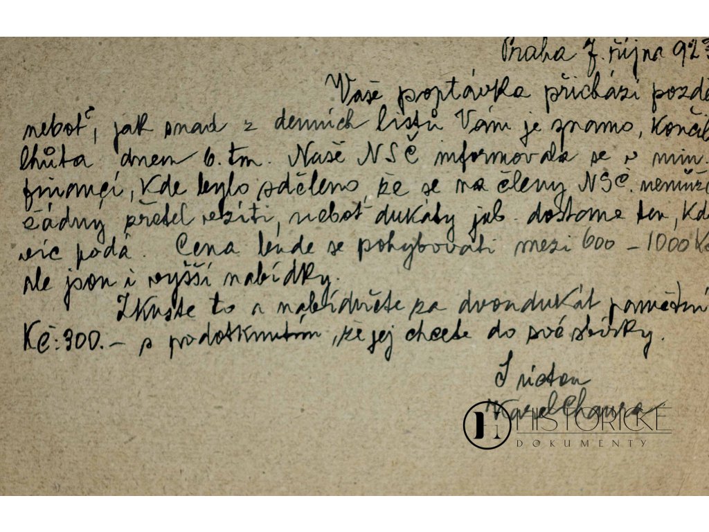 První republika představuje zlatý věk československé státnosti. Dokumenty z tohoto období odrážejí budování moderního státu, rozvoj průmyslu a obchodu. Charakteristická je vysoká grafická úroveň tiskovin, často s prvky art deco. Vznikají nové typy dokumentů související s rozvojem automobilismu, letectví či sportu. Akcie, dluhopisy, firemní dokumenty nesou podpisy významných osobností. Dokumenty ilustrují multikulturní charakter mladého státu s česko-německo-židovskou obchodní tradicí. Toto období je mezi sběrateli mimořádně ceněné pro svou výtvarnou i historickou hodnotu.
