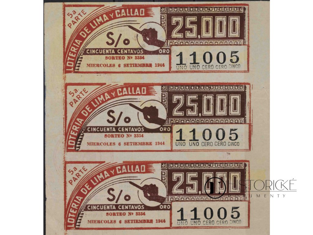 Losy jsou opatřeny červenými úředními razítky a obsahují podrobnou tabulku výher s hlavní cenou 25.000 soles. Jedná se o kompletní sadu losů z období druhé světové války, představující autentický historický dokument peruánské loterie. Neocenitelný materiál pro sběratele jihoamerických loterií a badatele dějin Peru během válečného období. Výtečná památka peruánské populární kultury.