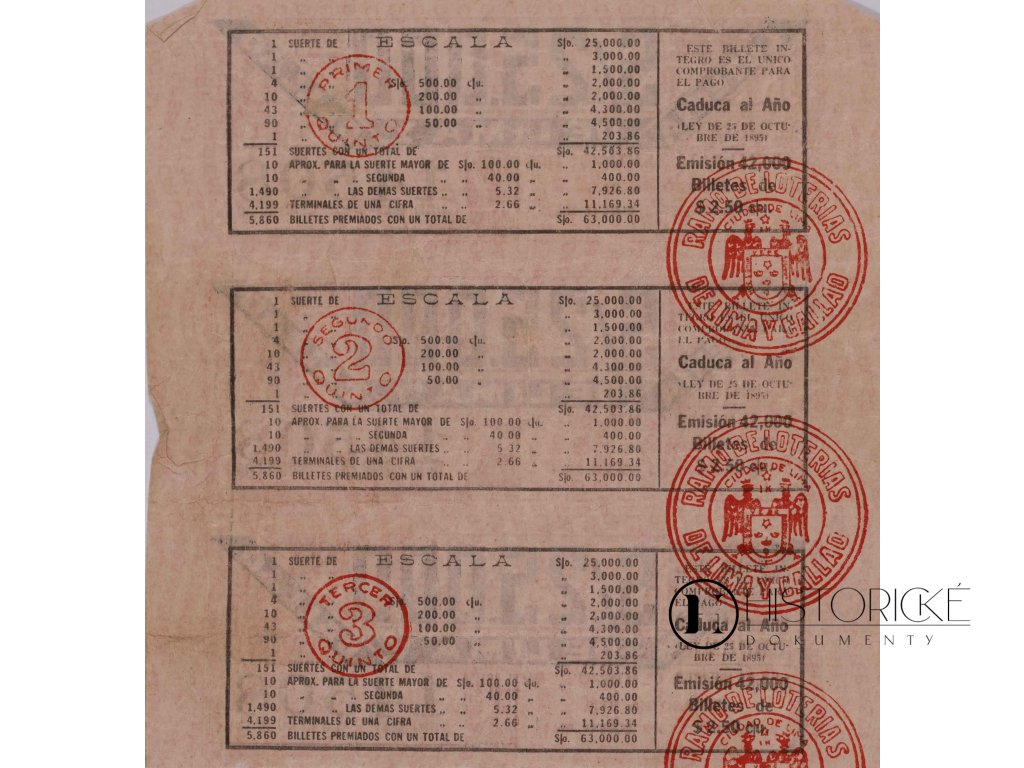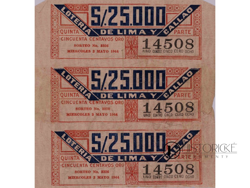 Losy jsou opatřeny červenými úředními razítky a obsahují podrobnou tabulku výher s hlavní cenou 25.000 soles. Jedná se o kompletní sadu losů z období druhé světové války, představující autentický historický dokument peruánské loterie. Neocenitelný materiál pro sběratele jihoamerických loterií a badatele dějin Peru během válečného období. Výtečná památka peruánské populární kultury.