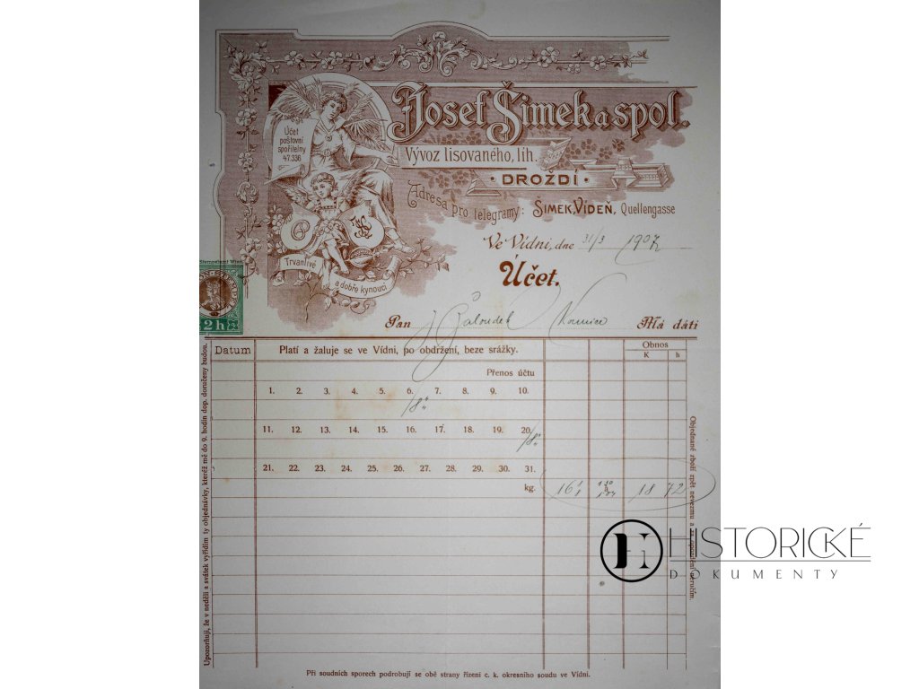 Účet J. Šimek, 1907