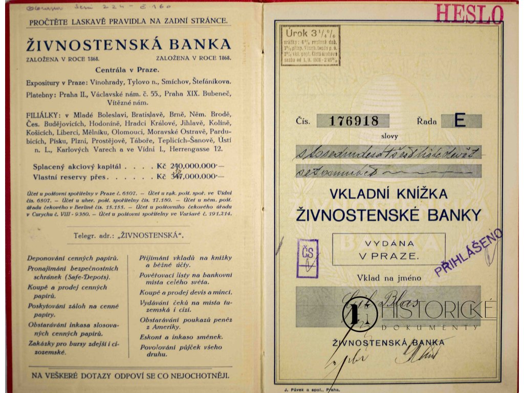 Vkladní knížka Živnostenské banky, 1936
