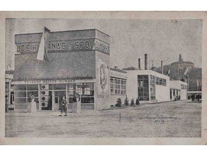 Pohlednice reklamní, Výstava 38 Náchod, Pavilon gumovky, Jos. Kudrnáč, Náchod - Hlinsko. Nenadepsaná, neprošlá, bez známky.